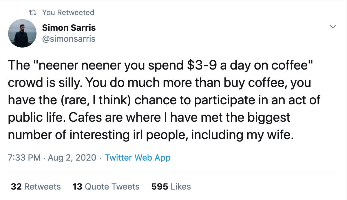 I probably shouldn't have even put this one in here because in my case, these people who approached me for coffee turned out to be just guys who thought I was cute.